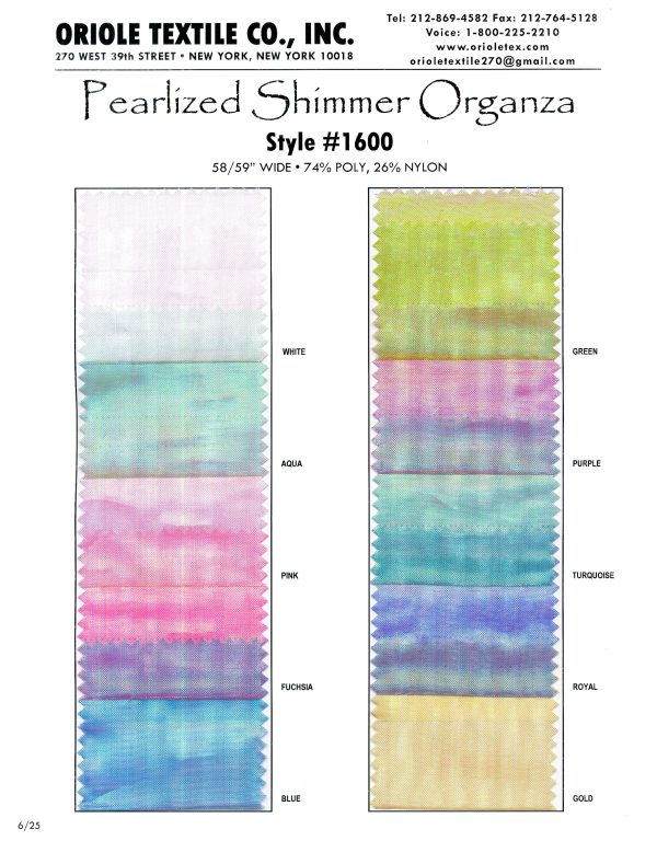 Elevate your designs with our Pearlized Shimmer Organza, a lightweight, sheer fabric with a subtle pearlescent glow that adds an elegant shimmer to any project. The perfect choice for bridal, eveningwear, costumes, event décor, and overlays, this organza combines structure and shine for a truly ethereal effect.
