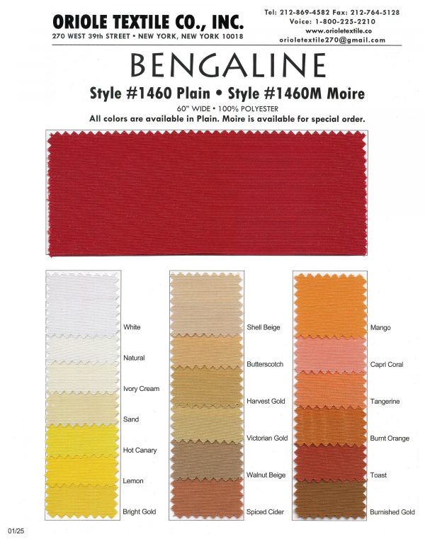Bengaline polyester fabric is available in a range of colors, from neutral shades to bold and vibrant hues. This versatility allows for a variety of design possibilities, from classic to contemporary styles.